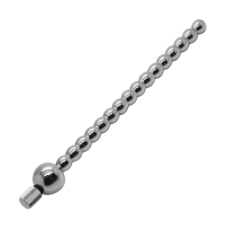The Piss Play with Threaded Stopper is a high-quality urethral sound designed for controlled play. The threaded stopper allows you to hold back urine or ejaculate until you are ready to release. Multiple o-rings between the thumbscrew stopper and the sound enhance both safety and sensation. This innovative piece offers a unique and enjoyable experience, with additional sizes possibly added in the future.