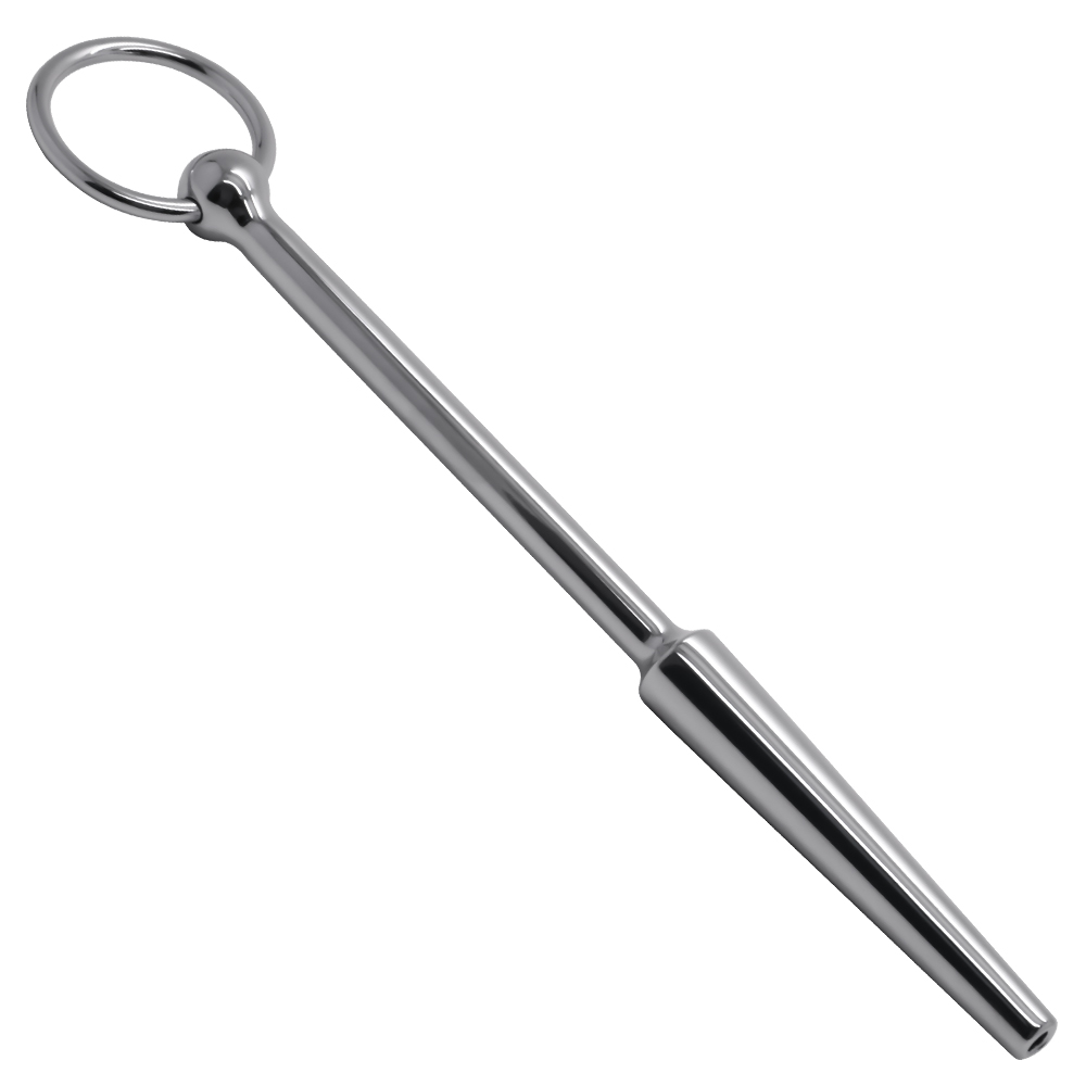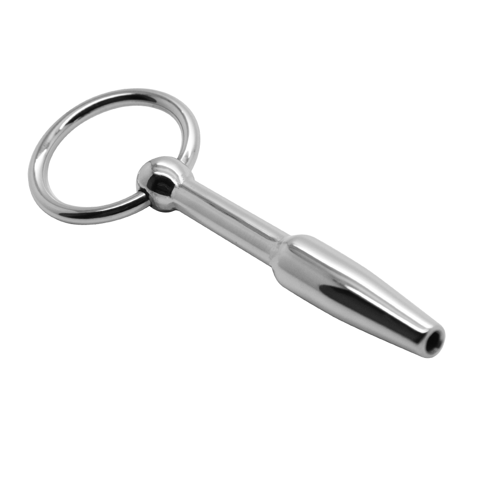 This toy is 57 mm (2 ¼ inches) long and it offers 47.4 mm (1 7/8 inches) of insertable length. It also includes an appropriately sized ball on the end, with an attached ring so the toy can easily be removed. This type of a penis plug with a ring on end makes your penis look pierced even if you don’t really have a Prince Albert piercing!